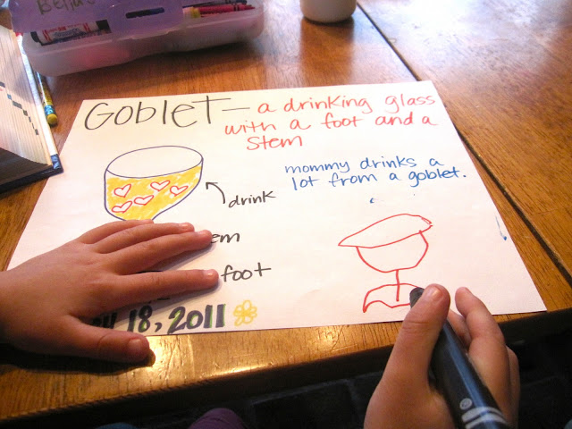 Our little daily project was turning out great. In fact, one day the word was loath (not willing, reluctant, disinclined) and as we were saying our good night's Bella busted out with, "Mommmm, Mia is being very loath right now. She's not laying in her bed."